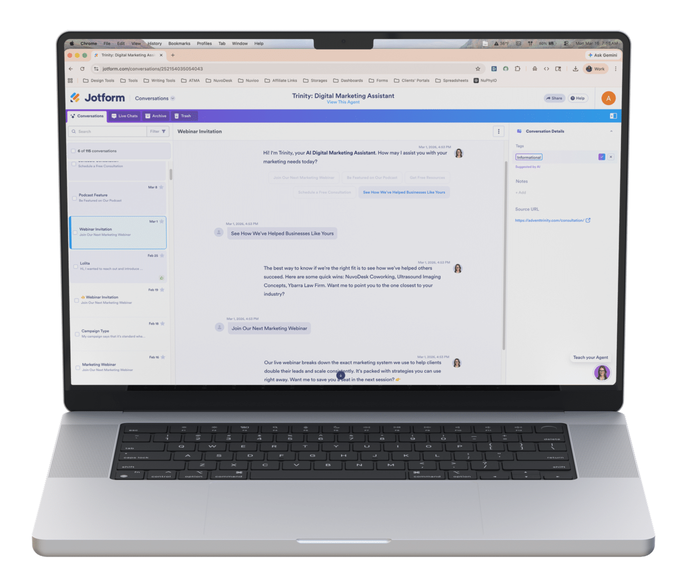 We deploy Jotform AI Agents for WordPress, enabling intelligent website conversations that capture leads and respond to visitor questions automatically.